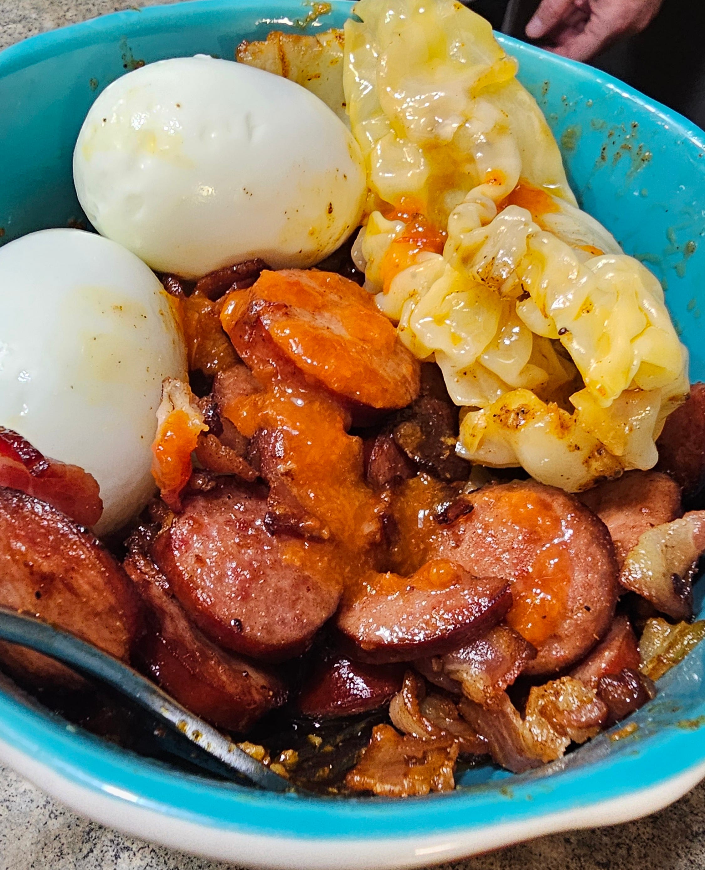 We made this tonight using this recipe I found on tiktok. It was EXCELLENT! We served it with fried andouille sausage, onion and bacon and also added a couple hard boiled eggs.